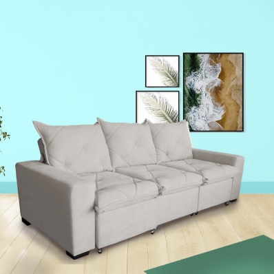 Informações Auxiliares: Quantidades de Lugares: acomoda até 3 pessoas Garantia: 6 meses Módulos retráteis com rodízios. Catraca blindada com sete ajustes. Opções de cores e tecidos.